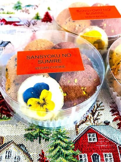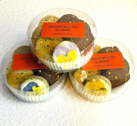 新鮮な味わいを楽しむなら、このクッキーセットおすすめです。すみれ紅茶、胡麻きな粉、ショコラピスタチオという人気の3つのフレーバーが詰まった7枚入りで、さまざまな味を楽しめます。
